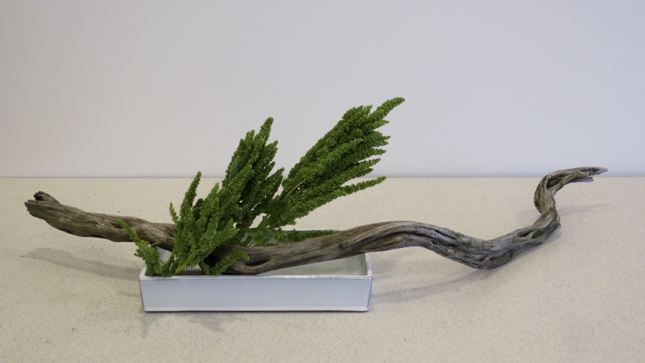 At the workshop, Lara then asked us to change the way we worked and use the familiar material in an unfamiliar way. This idea, from the 50 Principles of Ikebana, is to take us beyond the familiar and what we know works to make some new discovery. It is by doing something unfamiliar that we can truly become creative.